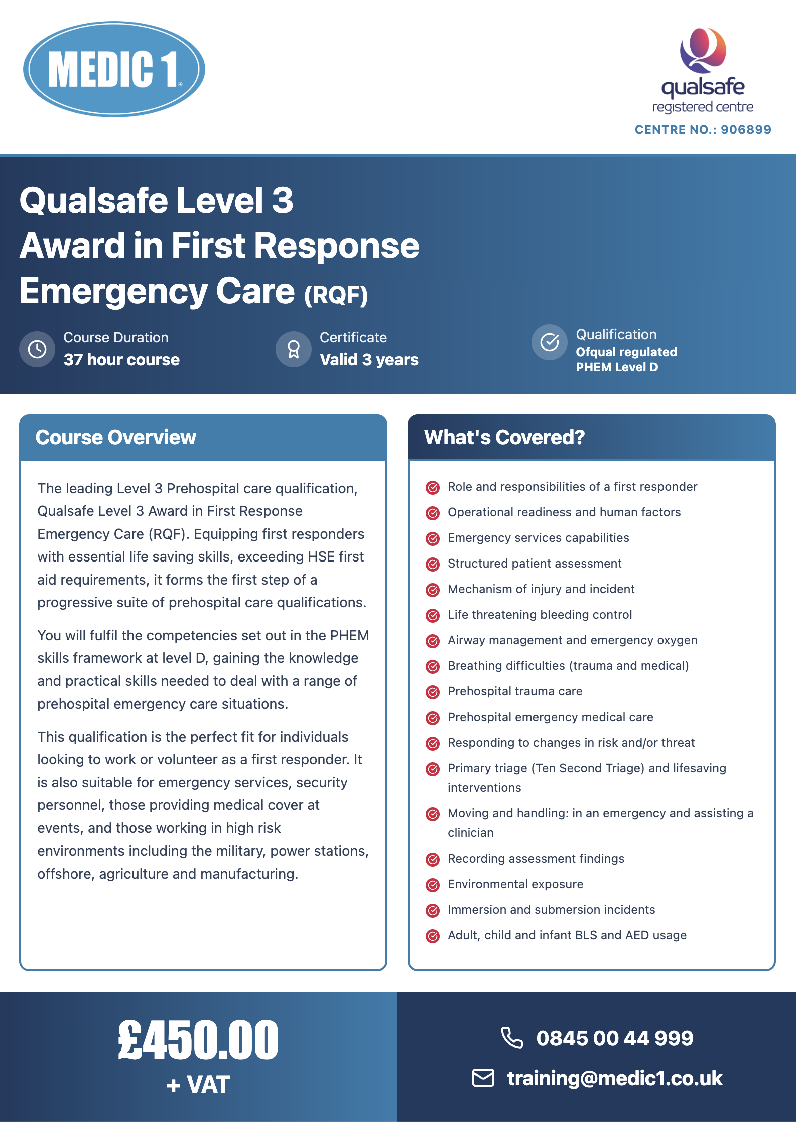 Qualsafe Level 3 Award in First Response Emergency Care for learners building practical emergency care skills.